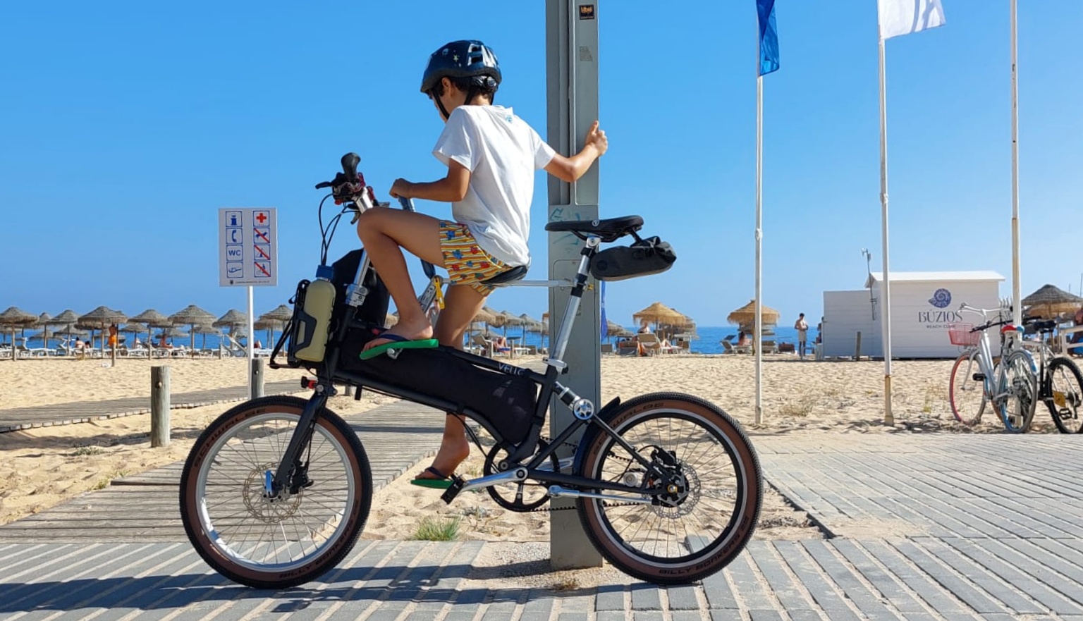 A bicicleta que escolhi para esta viagem foi uma VELLO não elétrica com 8 mudanças e correia. Precisava de algo leve que em conjunto com a carga ficasse num peso aceitável para subir/descer degraus e o espaço apertado do comboio. Mas que também fosse capaz de carregar o cachopo que já tem 25kg, o UrRider (aquele banquinho) ainda vai dando e é o que nos safa. Os IC têm a limitação de 15kg por bicicleta que só dá para convencionais. Mas se for dobrável não conta como bicicleta. Para o ano devo levar a Tern Vektron elétrica ou a Tern Short Haul não elétrica, que são as únicas que permitem levar crianças atrás e estão dentro do limite. Uma por ser dobrável, a outra por ser de carga mas não ultrapassa os 15kg.